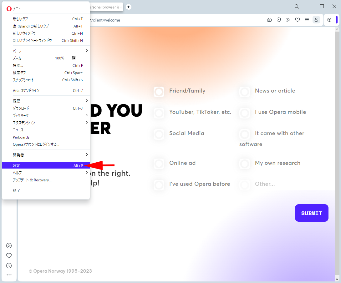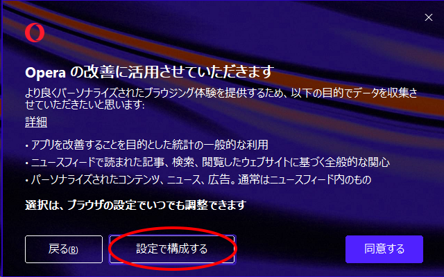 ステップ3 Operaブラウザをセットアップ