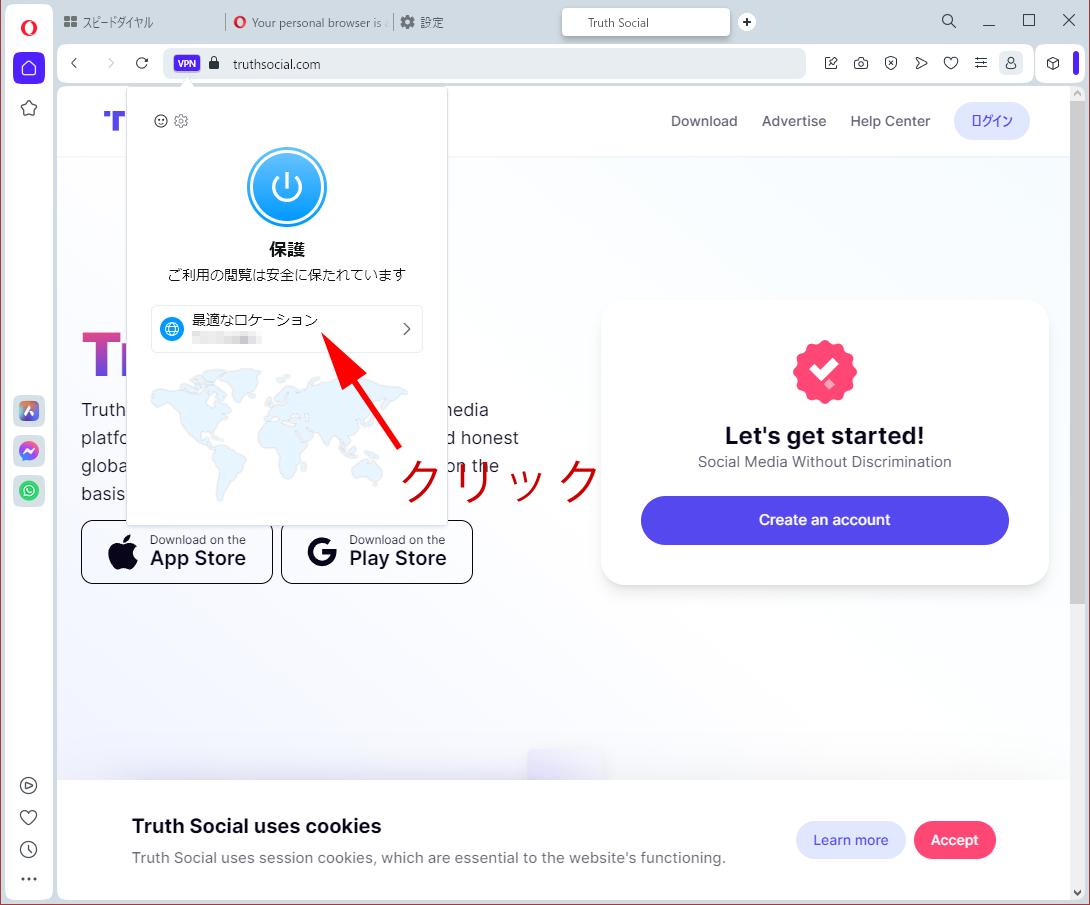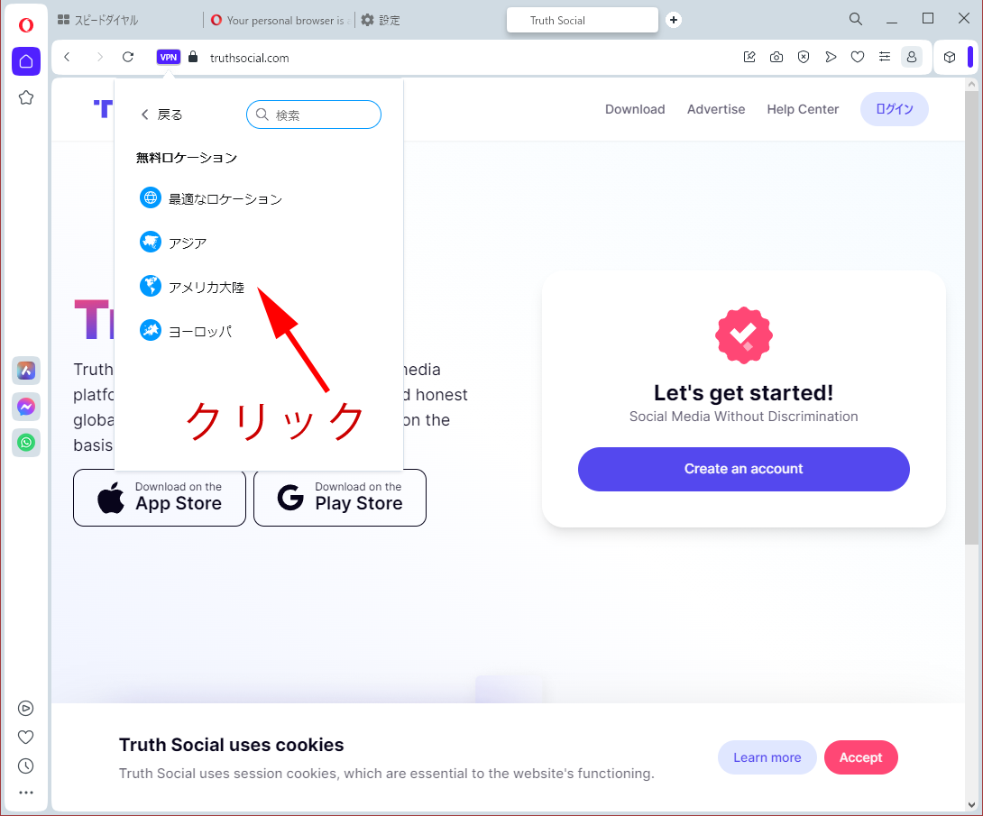 Truth Socialがアメリカ以外からの新規登録を停止してしまっているので、アメリカのIPを経由した新規登録方法を残します。